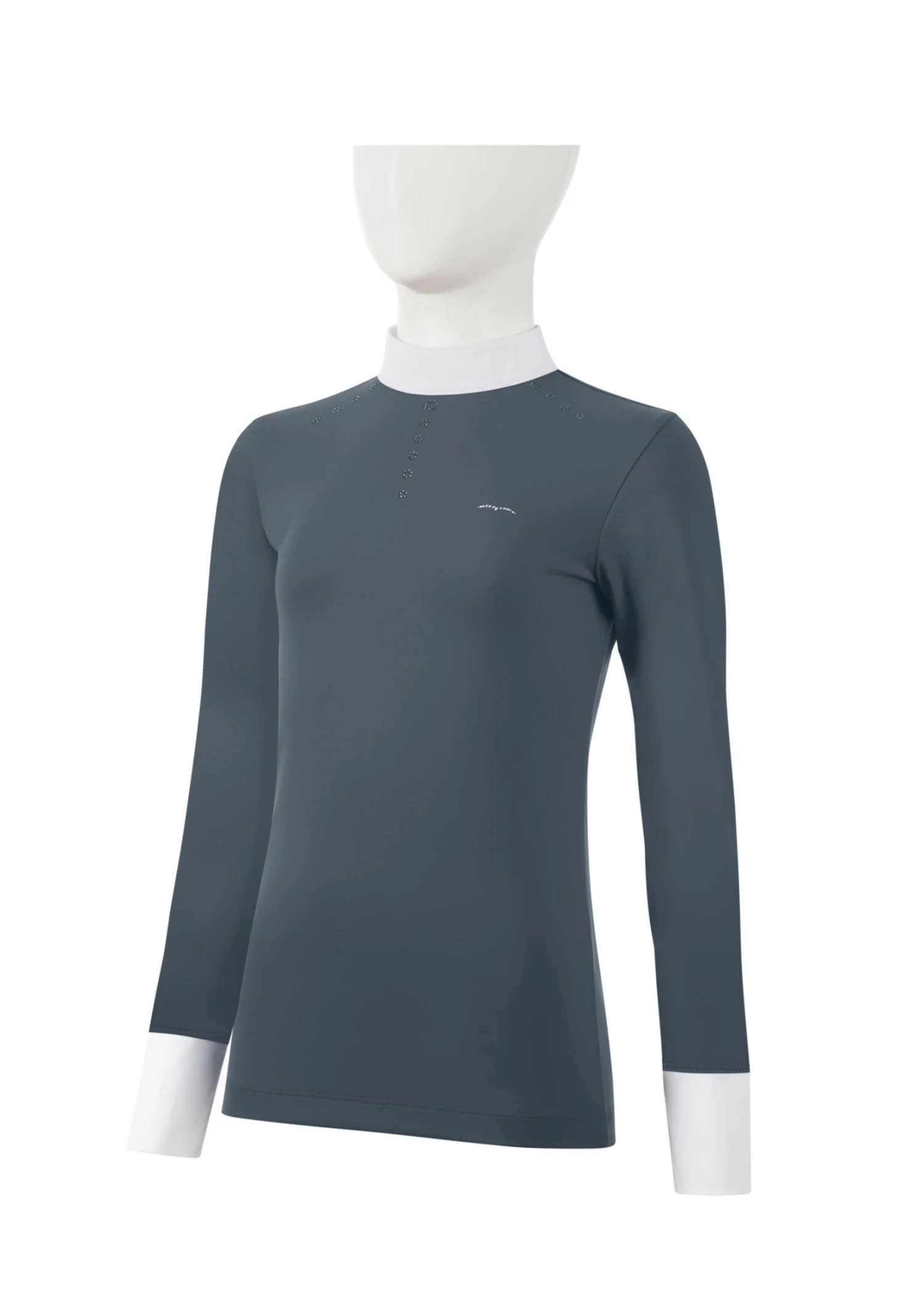 Animo Girl’s Belita shirt is an equestrian staple. The show shirt is composed of breathable, odor-inhibiting, bi-elastic material that will keep the rider fresh and able to move freely all day. The classic, elegant design is accompanied by an eye catching rhinestoned Animo logo on the left chest.