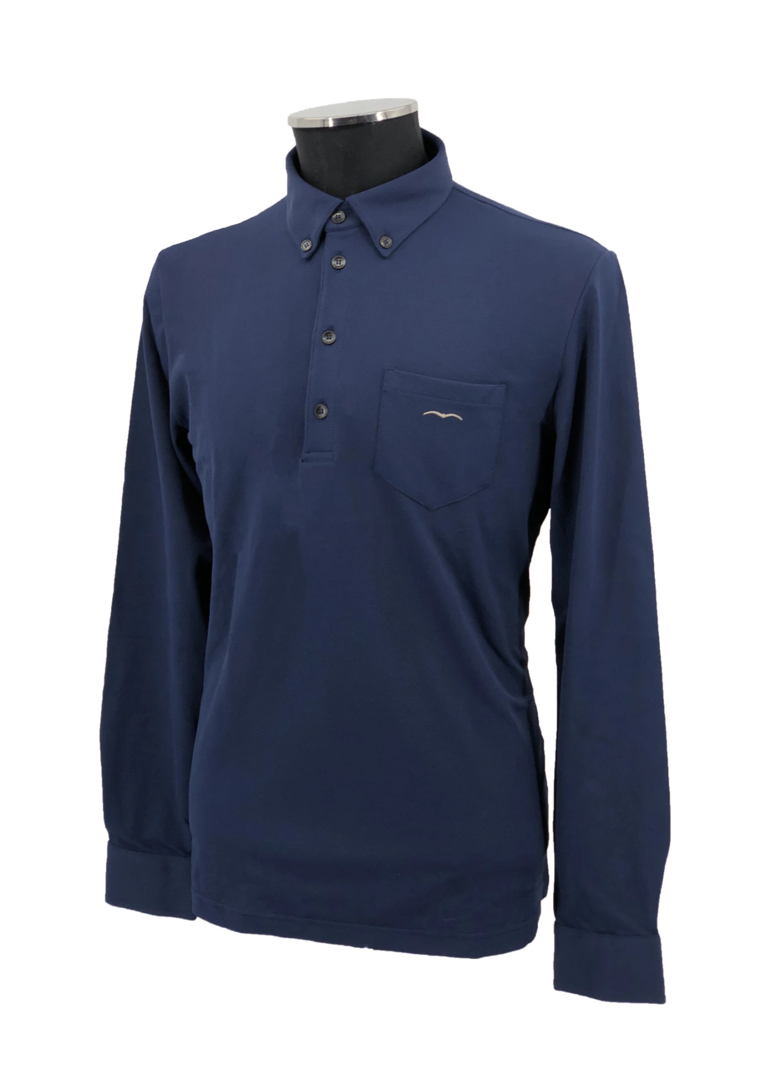 The Achel mens show shirt is a stylish long sleeved polo shirt that can be worn with or without a jacket. Featuring Animo’s breathable bi-elastic material, this essential shirt is suitable for all weather. The shirt has stylish contrast buttons, including those to button down the corners of the collar. As a final touch, there is an open breast pocket with the logo embroidered on it.