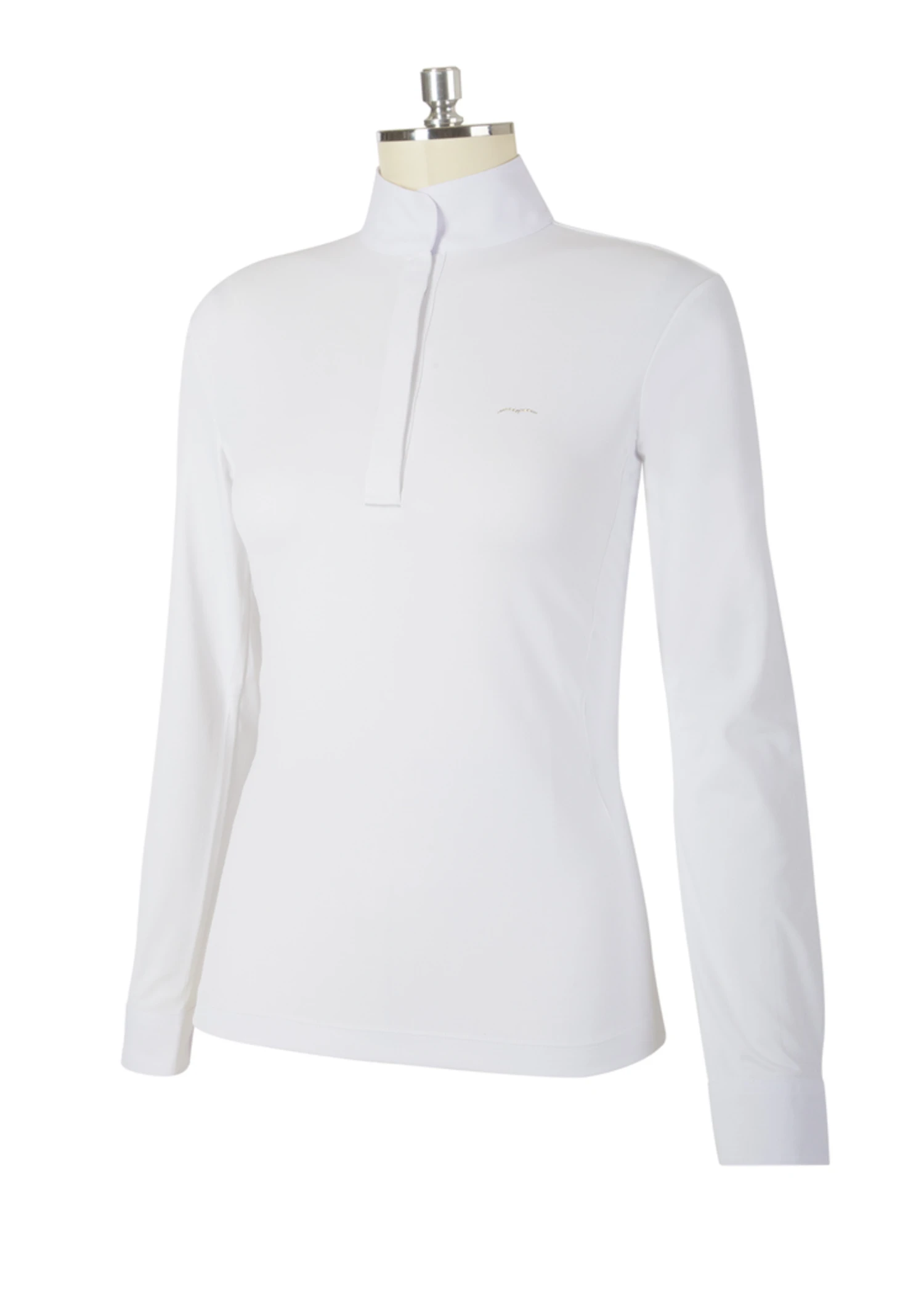 The Animo Women’s Bolla Show Shirt is a classic, elegant long-sleeved show shirt for all three rings, hunter, jumper, and equitation. Composed of bi-elastic material with incorporations of silver threading, the shirt is odor-inhibiting, breathable, anti-microbial, and hypo-allergenic. For a polished finish, the shirt boasts a taller collar and hidden contrast buttons and an eye-catching glittery animo logo on the left chest.