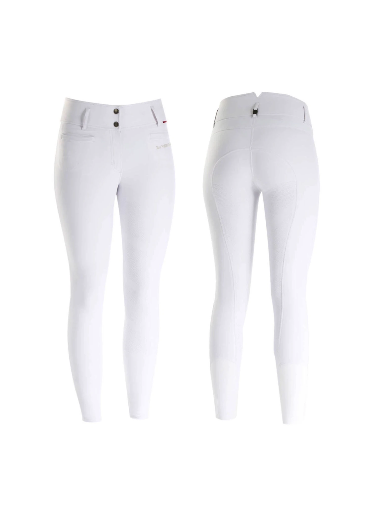 These breeches offer a new look and feel. Elegance combined with high fashion and functionality is showcased in this lovely pair of breeches. These breeches are classically styled with some technical updates. They feature a silicone grip full seat. You will find optimal comfort during training or competitions with the high waist. The Opti-Pro fabric is highly breathable, and provides the perfect amount of stretch while maintaining shape. With smooth lines and simple details, the Tiffany is the ultimate option for riders who prefer a mix of the traditional and modern. Features include breathable, moisture-wicking fabric with long lasting and functional 4-way stretch, as well as an excellent calf fit with a stretch panel and a high waist design for comfort.
