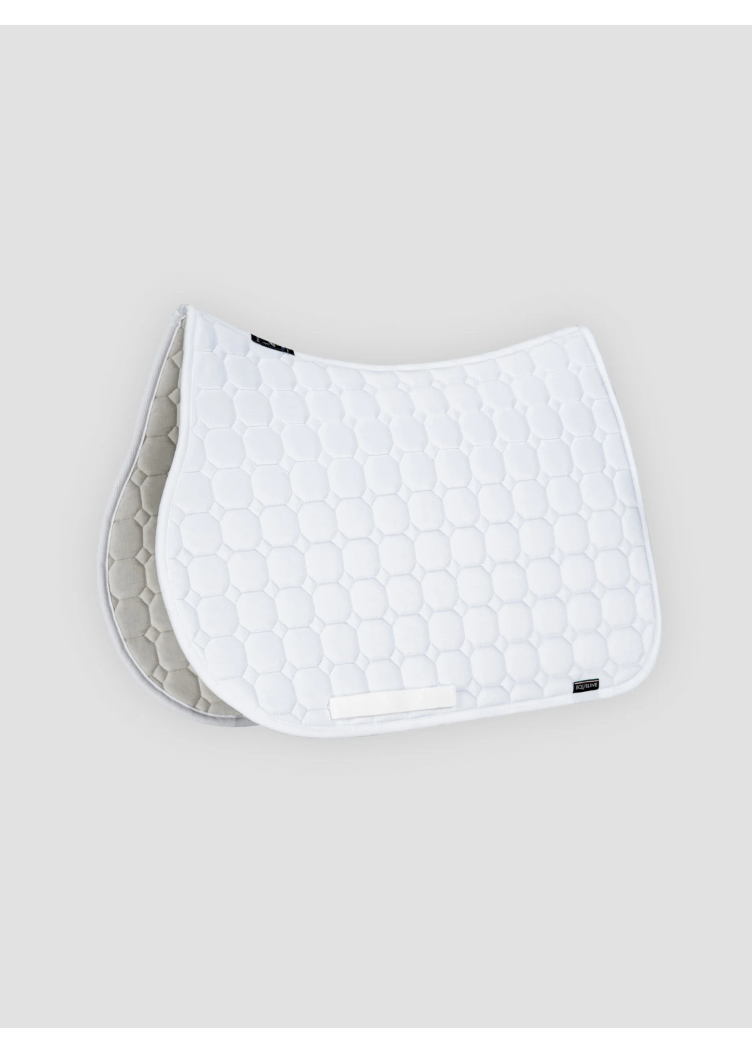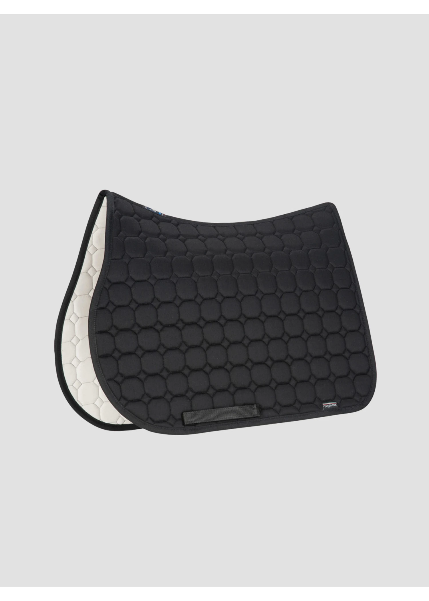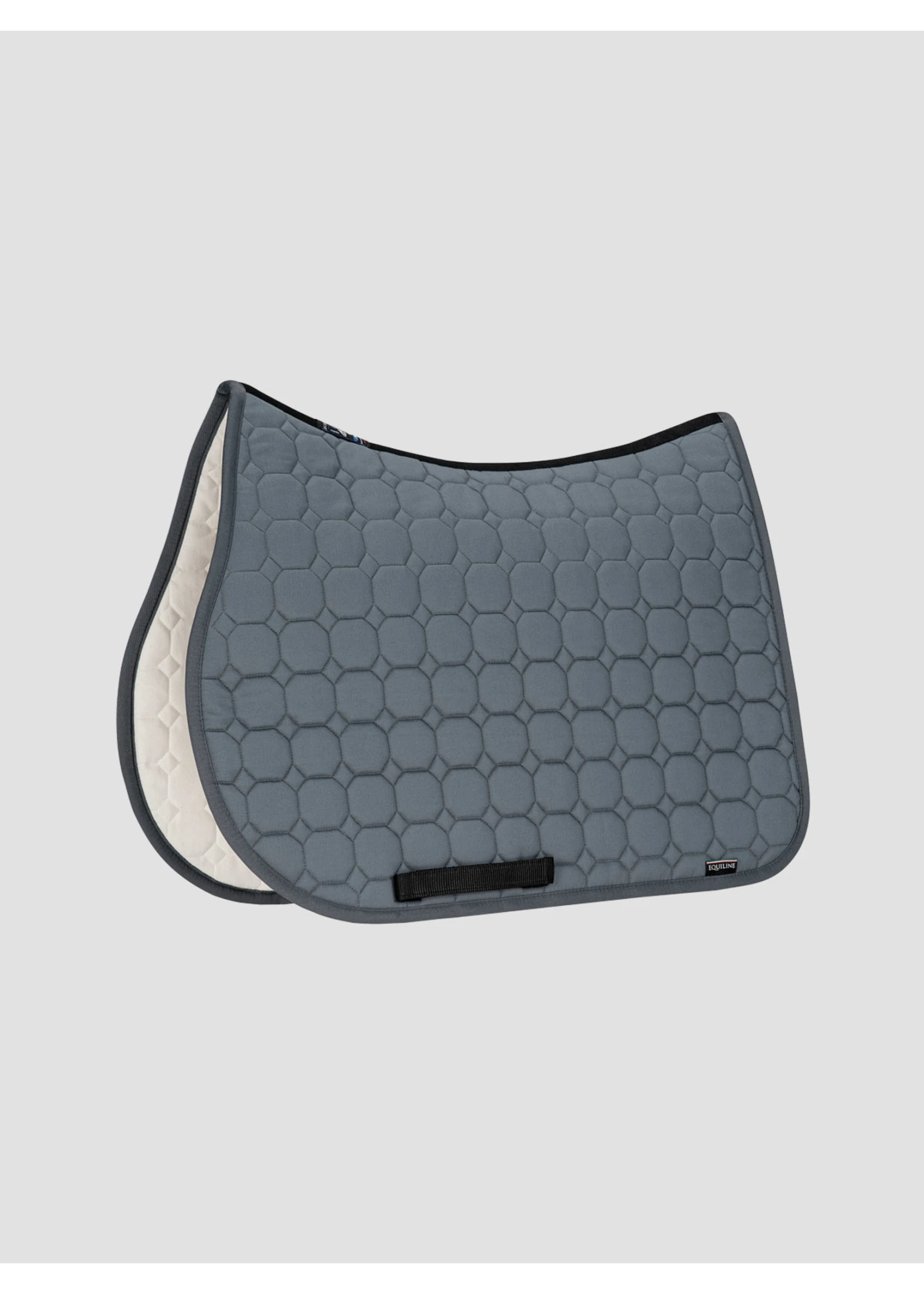 Equiline saddle pad made with soft cotton and featuring Equiline logo outline embroidery. The OUTLINE, octagon saddle pad is made with wadding in 900 g pure breathable cotton wool. All fabrics used are anti-bacterial and hypoallergenic. Additionally, ACS2 system with Shock Absorber guarantees maximum breathability and a high level of shock absorption for this saddle pad.