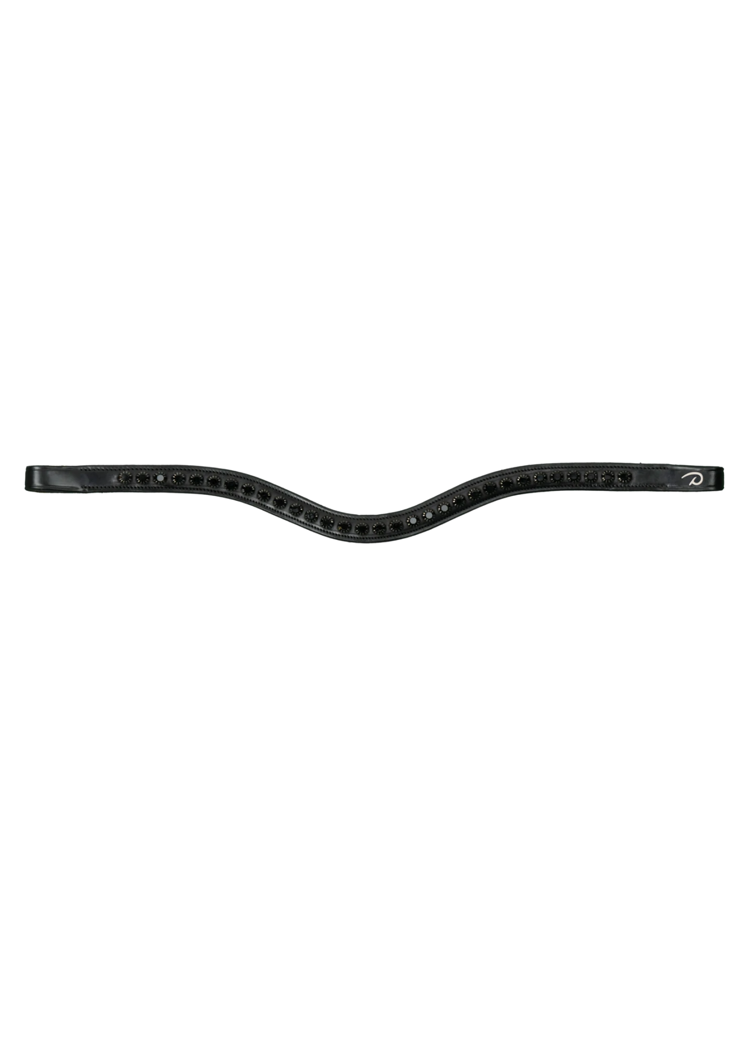 This Dy’on snaffle bridle is from their Round Leather Collection which features Grade 1 Catalan leather tanned in Spain, English black leather finish. This particular bridle has a special order black Swarovski crystal browband that is subtle yet adds a hint of sparkle. The padded crank noseband has a matte black finish. This bridle comes with steel hardware.