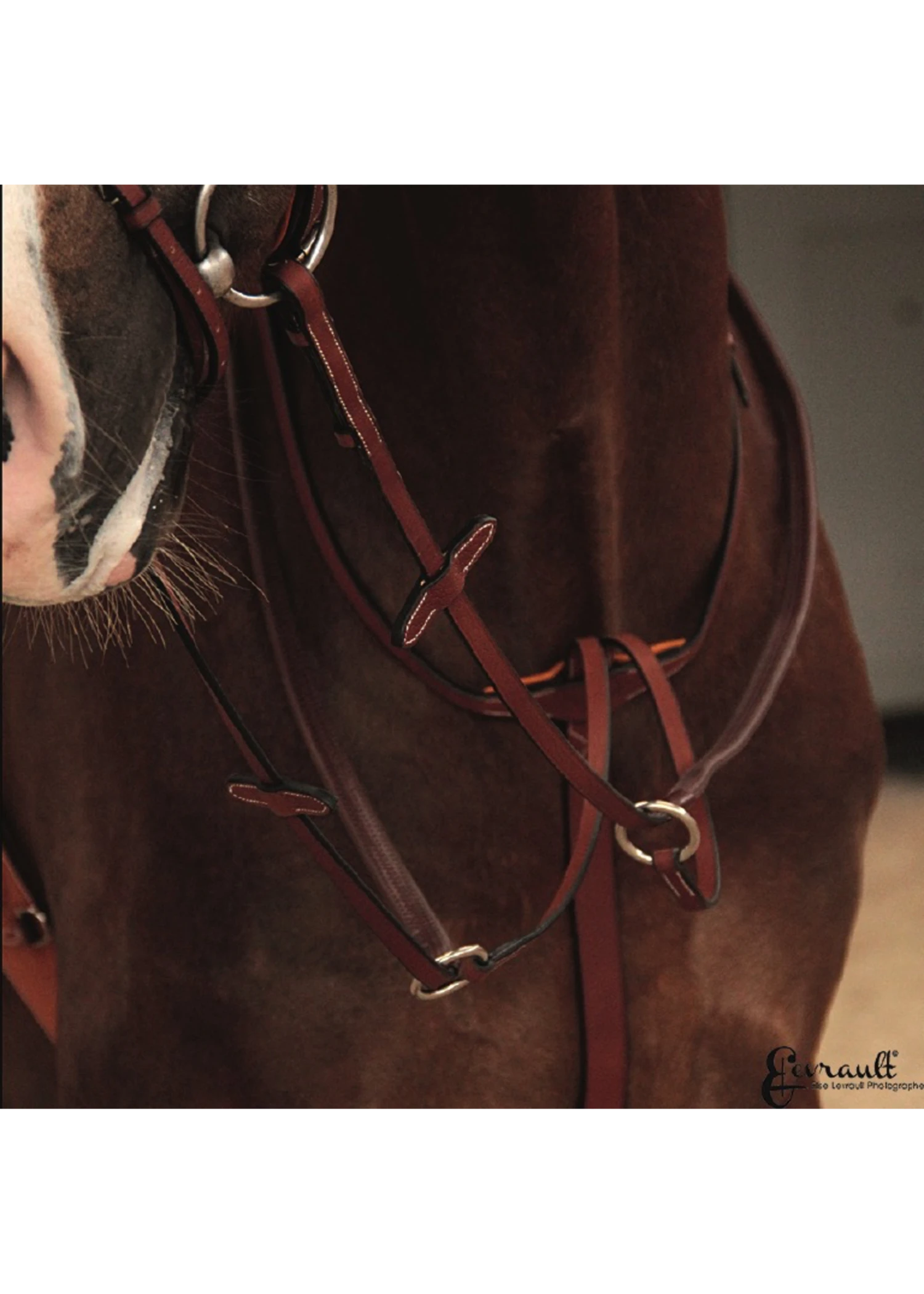 The Butet Running Martingale is made from top quality grained leather . It has an exclusive padded leather attachment featuring the Butet emblem. Made from supple, high quality leather, this martingale is a complement to any horse’s show tack. Raised leather without fancy stitching. Made in France