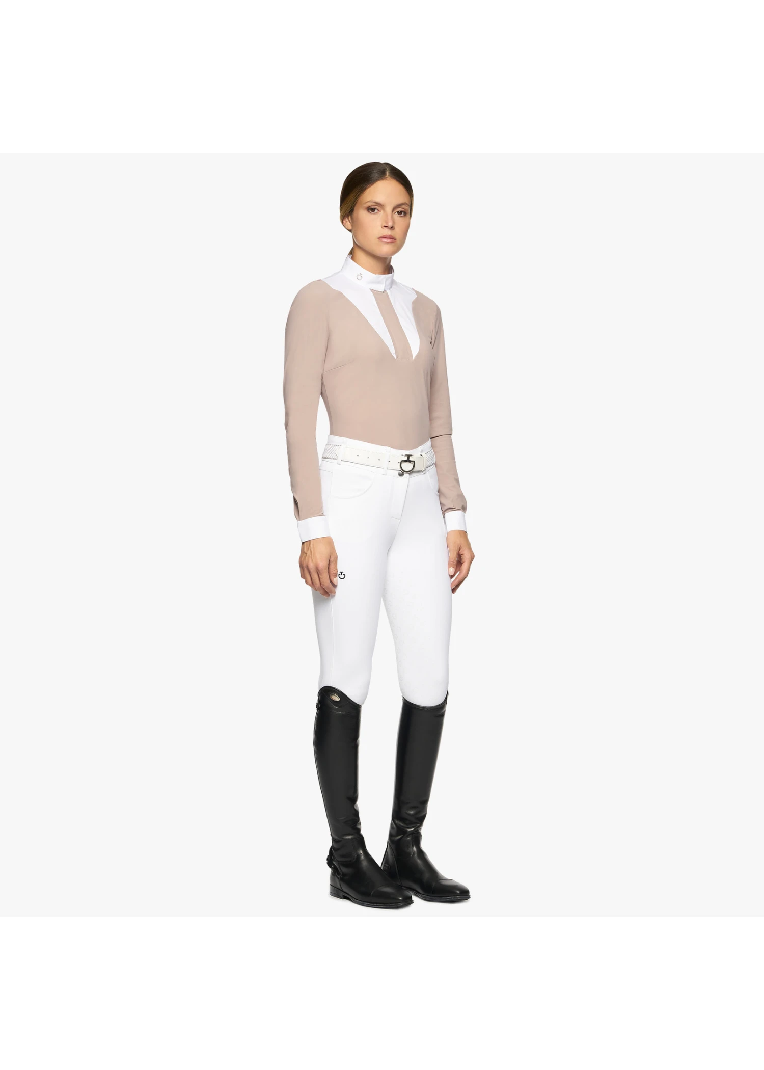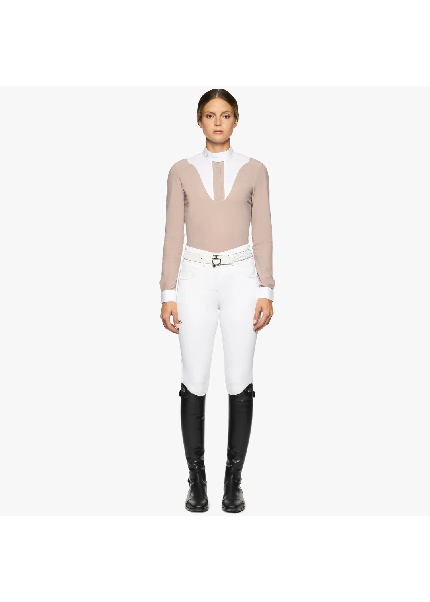 Update your horse show wardrobe with the geometric allure of this competition shirt. Impeccable fit while the supple performance jersey fabric stretches in all four directions to ensure maximum freedom of movement.