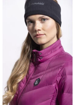 This women’s belt is made from elastic rayon and is created with leather strips woven over elastic. It has a smooth leather tip and a metal clasp with logo.