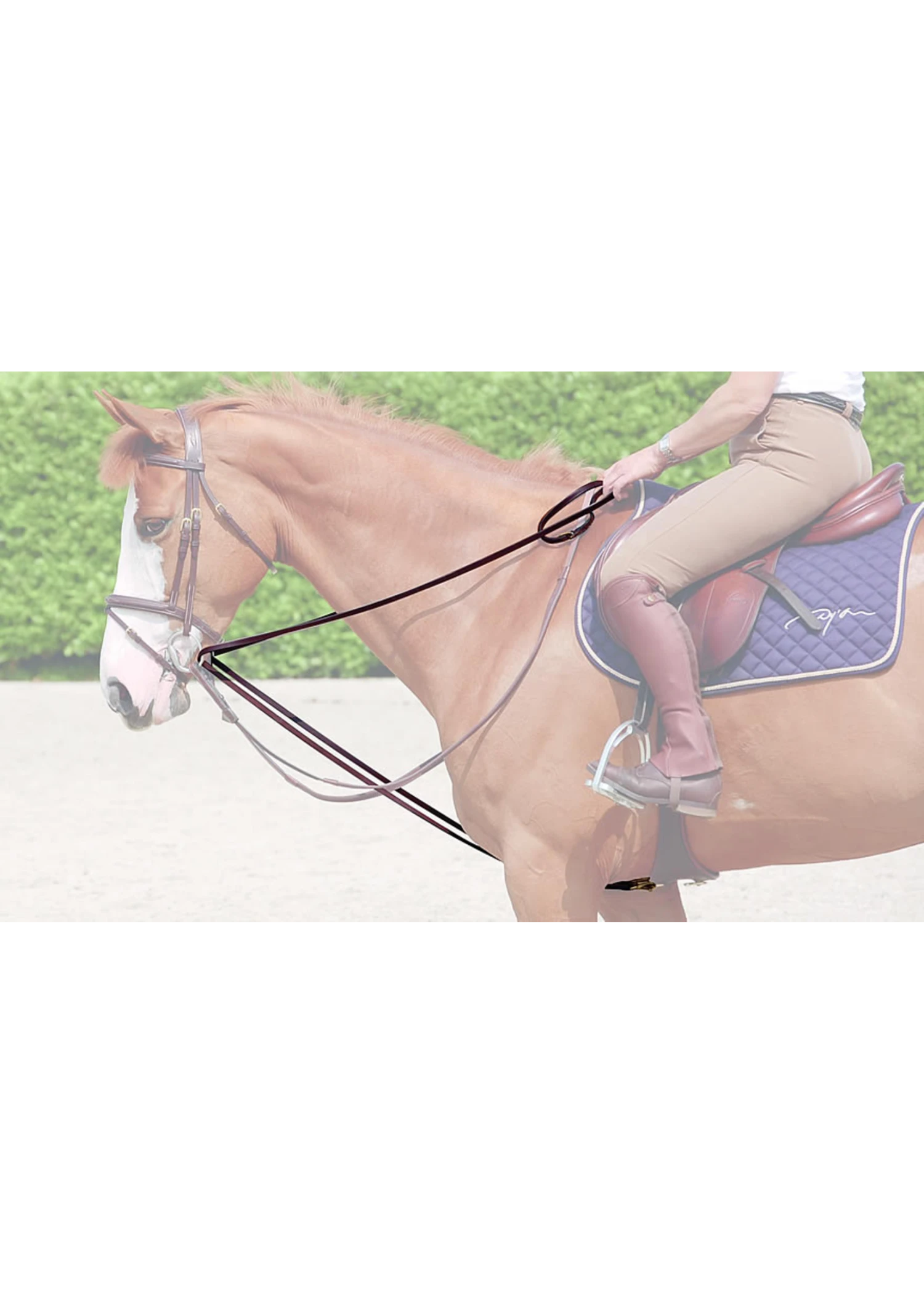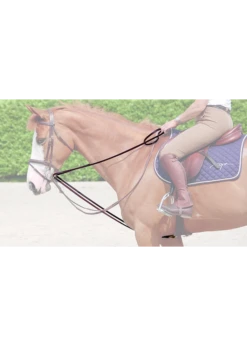 These 1/2″ full leather draw reins are from Dy’on’s D collection. They feature Grade 1 Catalan leather, tanned in Spain, cream stitching and brass hardware (snap hook ends). The leather part is made up of one single piece. The set comes with a removable girth attachment.