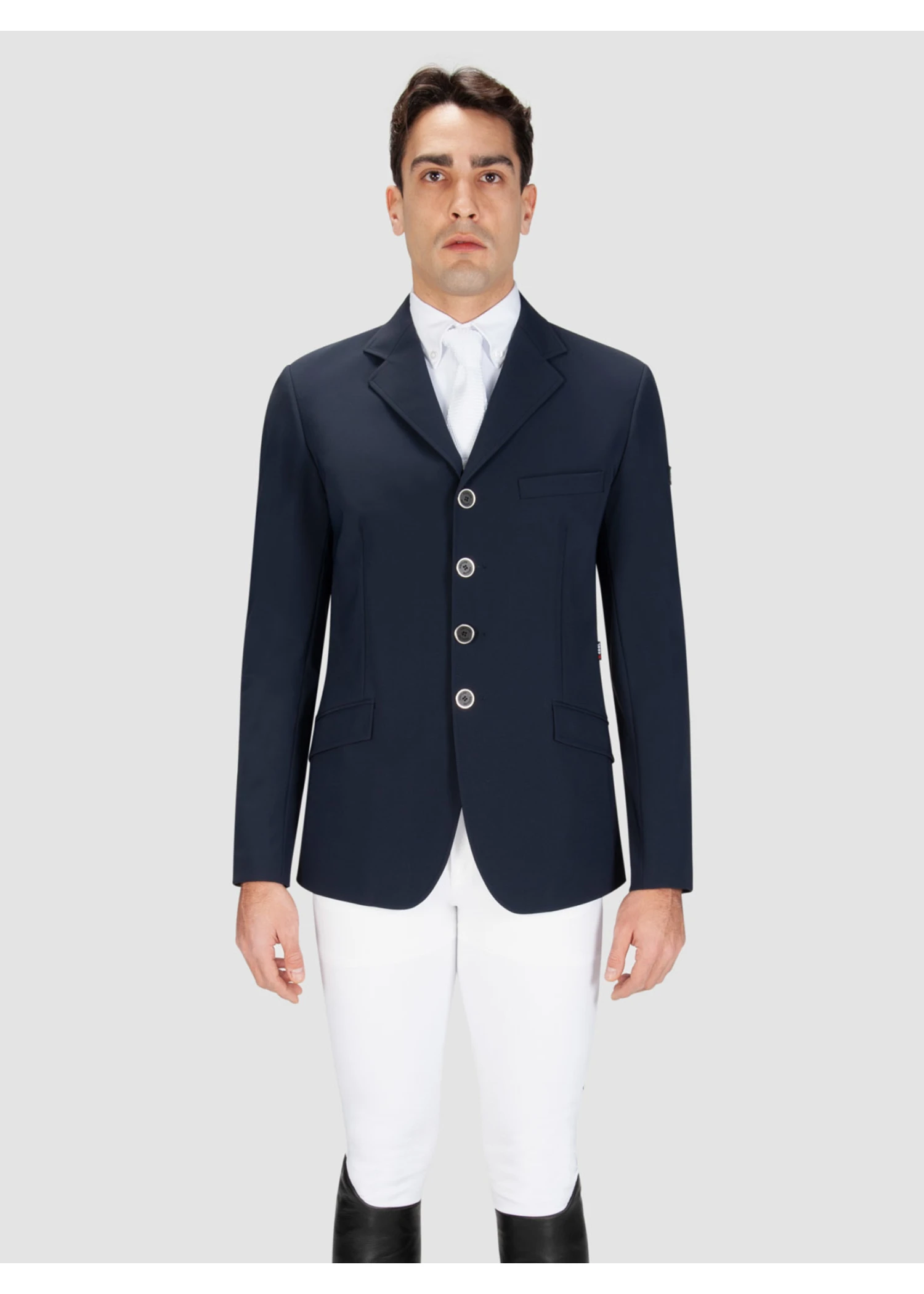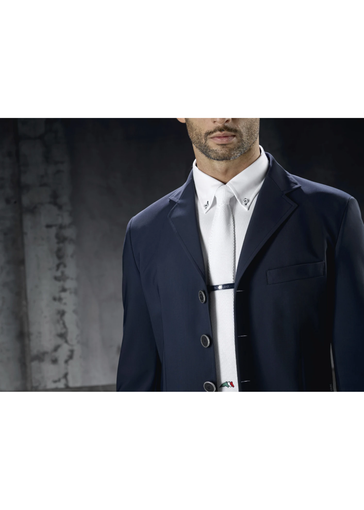 Men’s show coat made with X-Cool Evo, the revolutionary fabric by Equiline. This fabric guarantees a tailored fit, freedom of movement and durability. Handmade in Italy, the modern design of the RACK men’s show coat creates a fashionable item for the male rider. Additional features include that this coat is machine washable and water repellent.