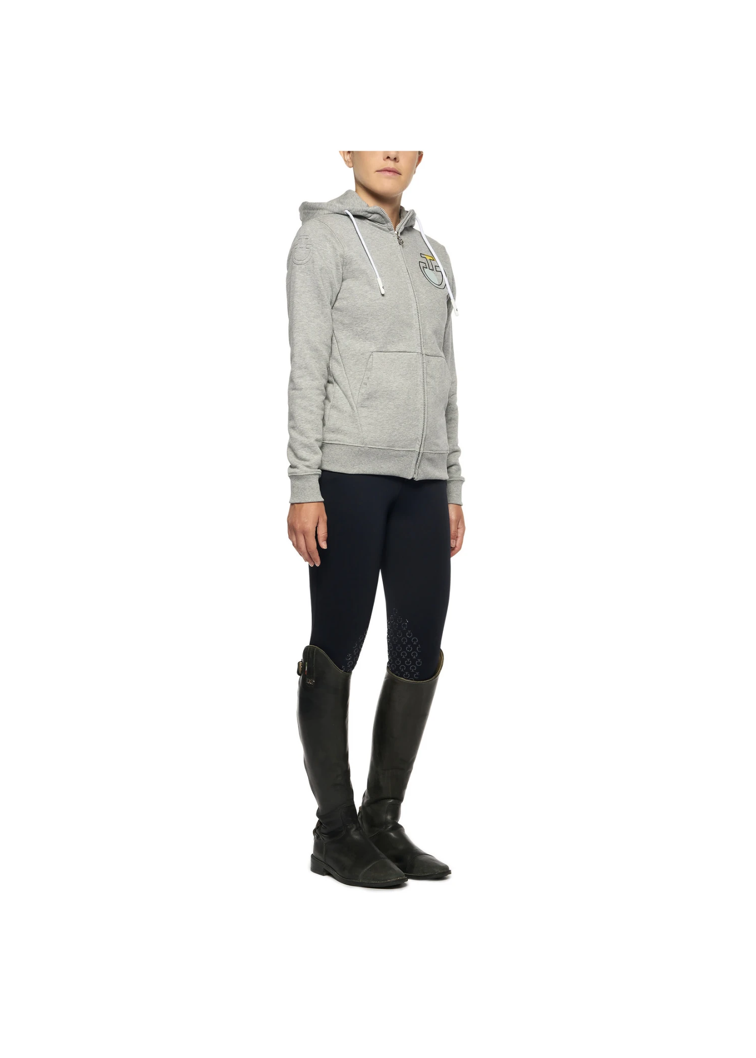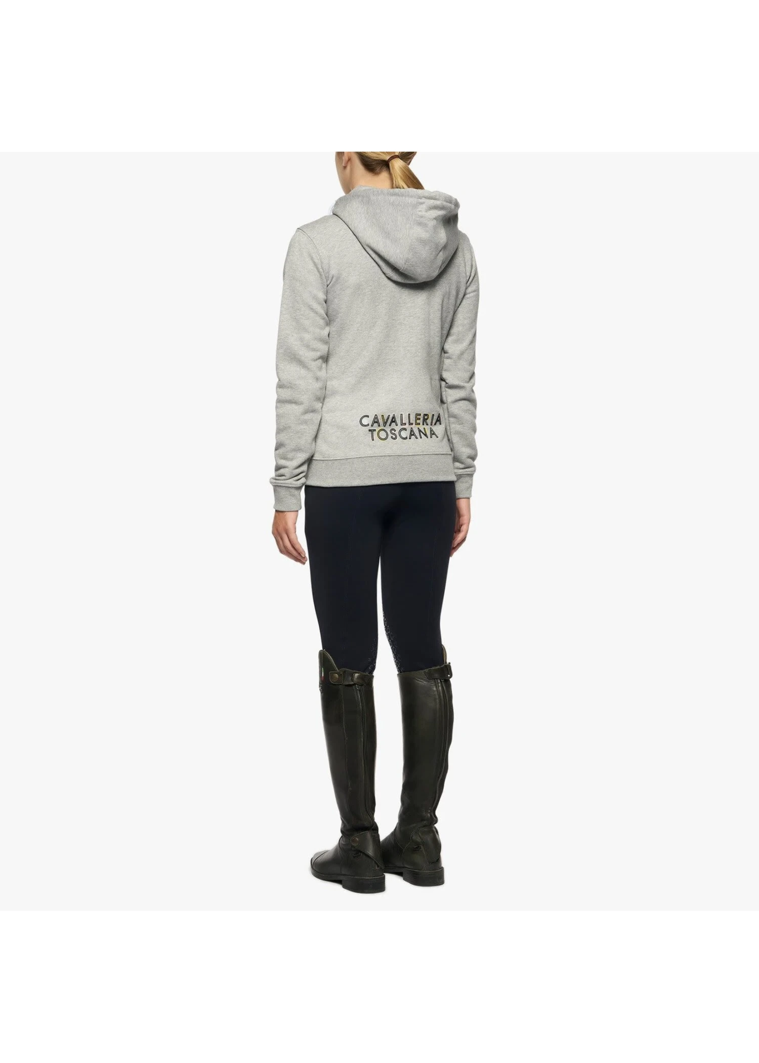 This comfortable hoodie is perfect layered over t-shirts and other tops when riding and at the stables, or simply worn as part of everyday looks. The versatile, practical cut features a cosy adjustable hood, roomy pouch pockets and a full zip closure trimmed by a logo puller. Colorful Cavalleria Toscana prints decorate the chest and back, adding a fun, vibrant twist to the garment.