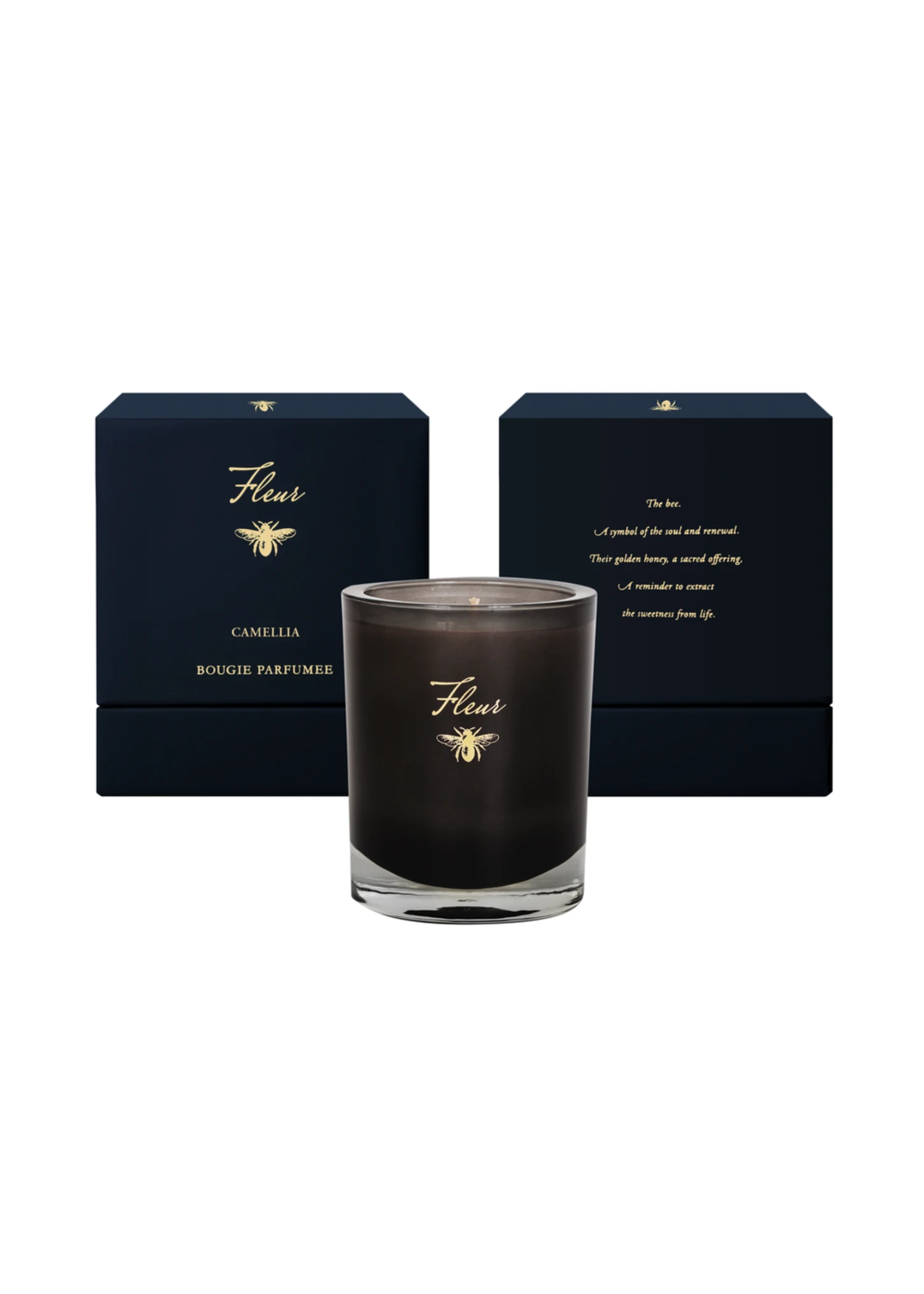 Fleur Blanche – A fresh and lovely blend of complex green florals leading with gardenia and a gentle accord of jasmine, cyclamen and white musk. White glassware with signature gold bee. Premium Soy / Vegetable wax blend. Net Wt. 8 oz. Burn time: approximately 50 hours