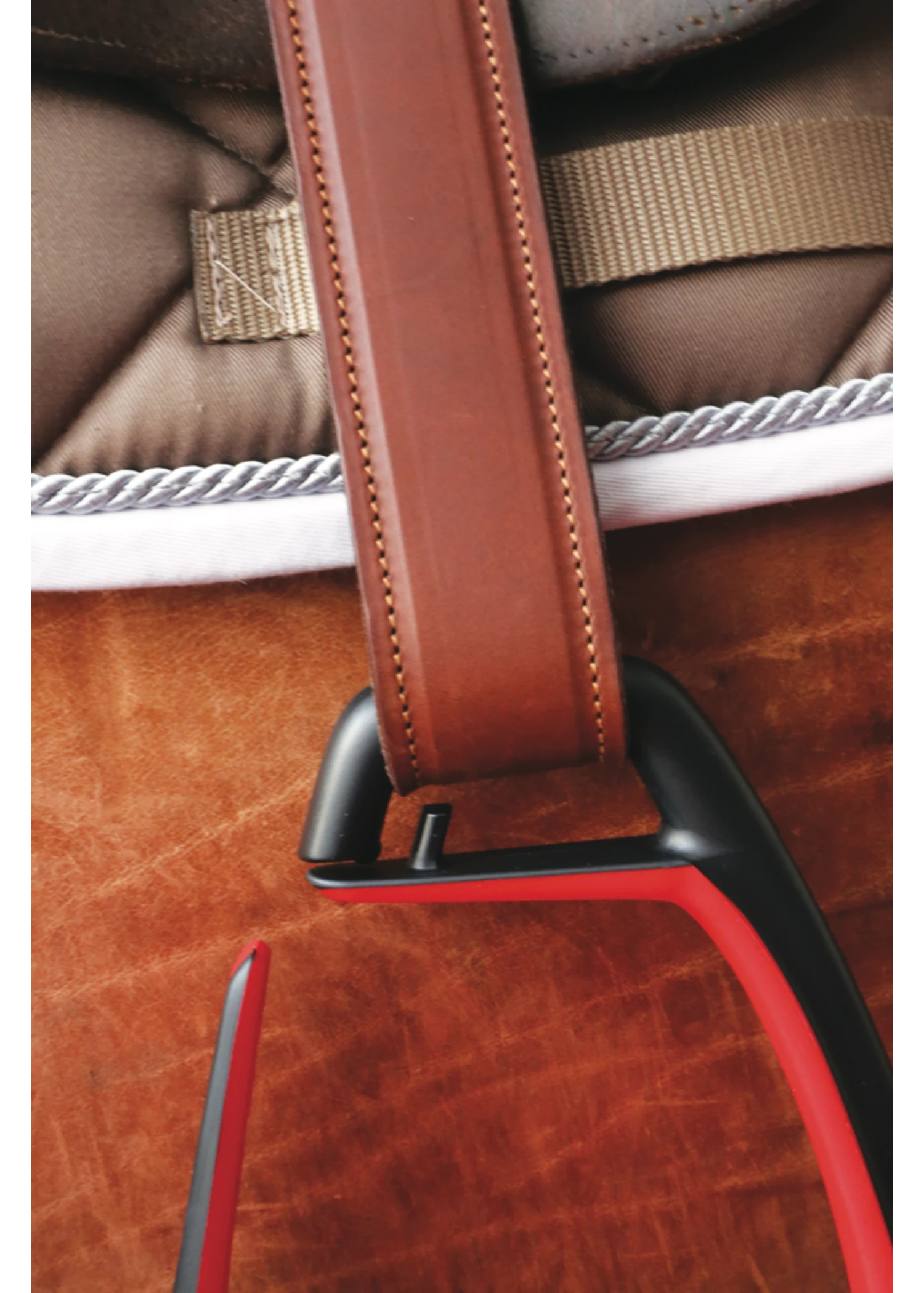 The Freejump “Classic Wide Stirrup Leathers” pair well with the “Soft Up Classic” stirrups. The leathers allot for close contact between the rider’s leg and the horse and have 15 mm spacing between holes for precise, even stirrup length.
