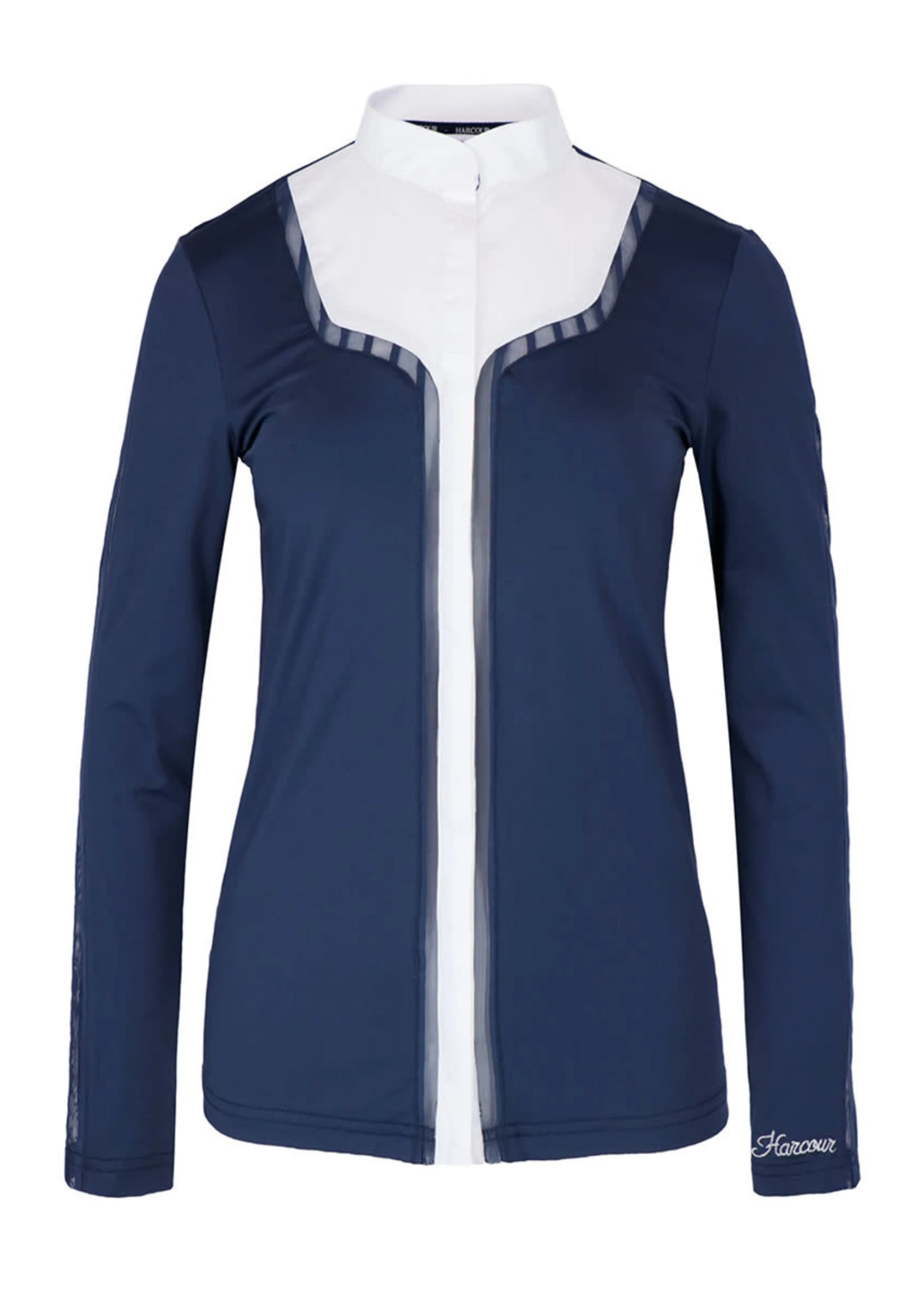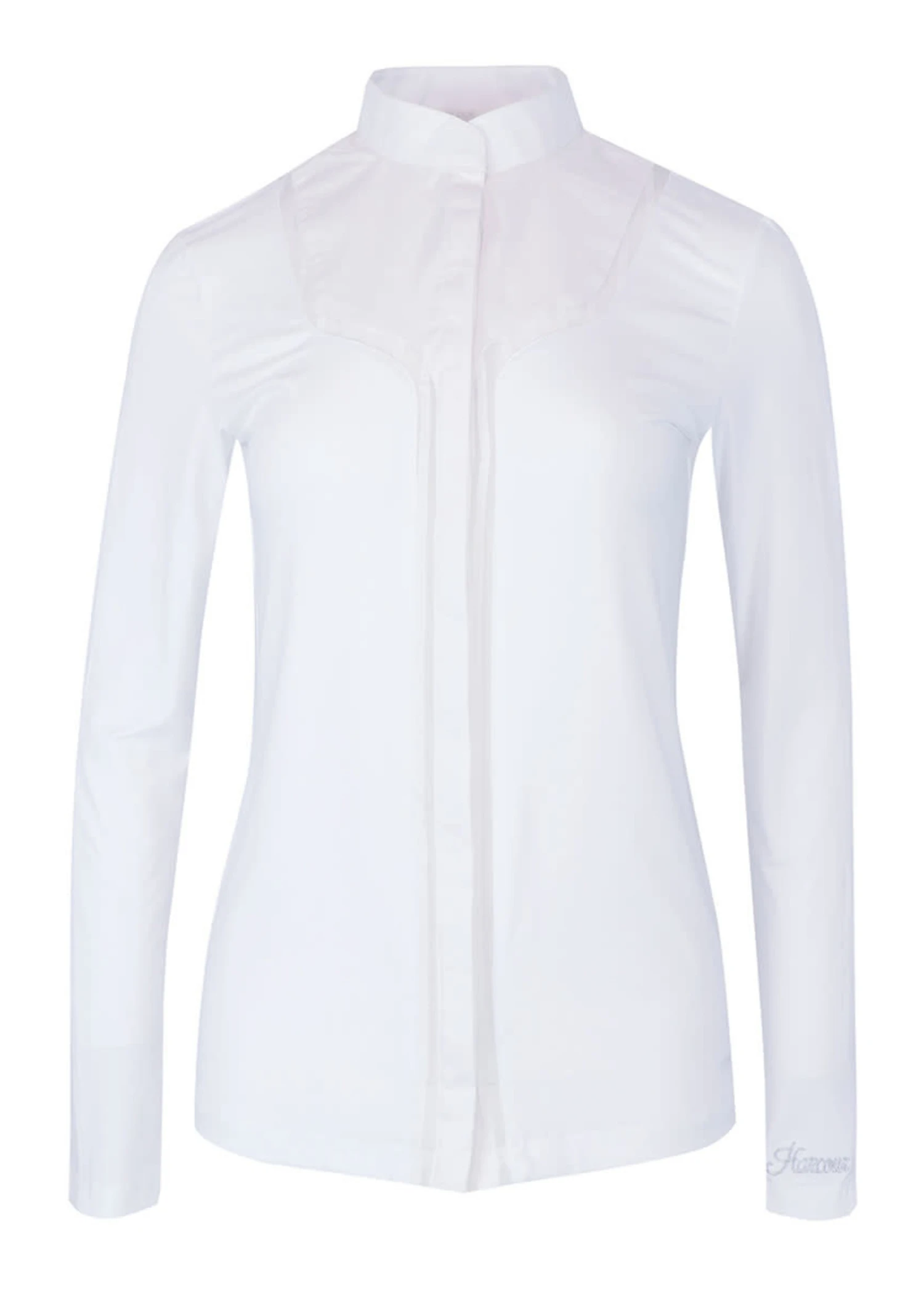 The Harcour Elisabeth Show Shirt will keep you cool on warmer days and pairs well with a fitted show jacket. The shirt offers jersey ventilation and a hidden magnetic fastener on the shirt’s collar.