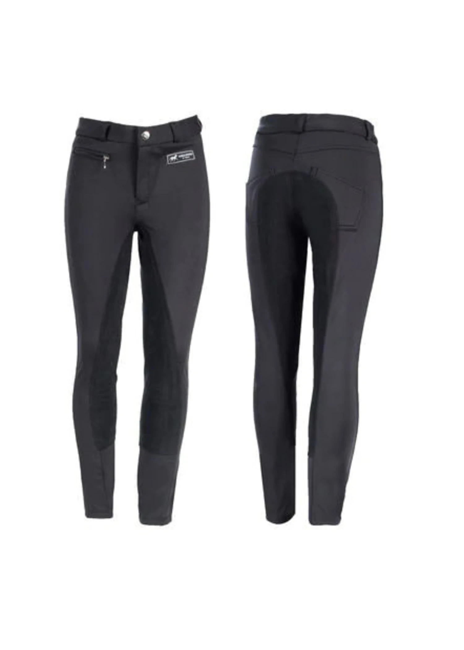 Your young rider will enjoy lessons and rides deep into the winter with these warm breeches. The bonded fleece lining of these comfortable kids winter breeches are great for the changing seasons. The water repellent outer makes damp, dreary rides cheerful when your young rider is dry and cozy. One front pocket and two rear pockets with elastic leg bottoms give these breeches are more structured feel than regular riding tights. Ideal for late fall lessons with a nice leather-like full seat for added grip and security in the saddle.