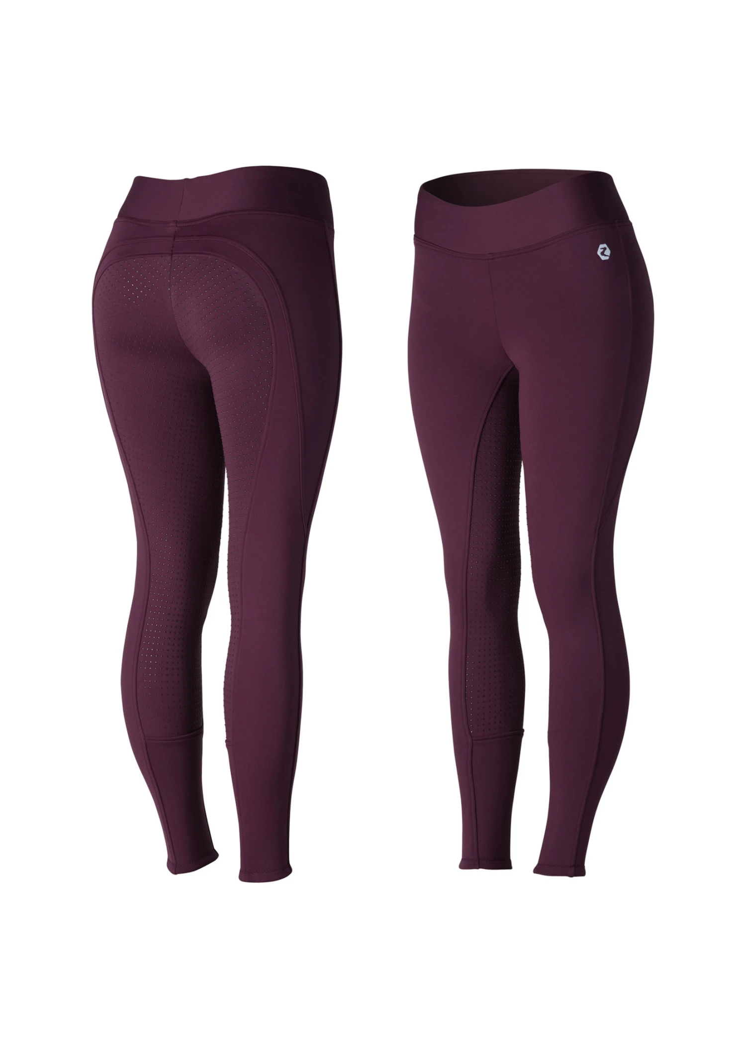 The soft, breathable fabric with brushed fleece lining is ideal for holding warmth in to keep you feeling cozy even on cold weather rides. The mid-rise waist is perfect for layering and the simple front closure won’t feel binding in the barn or in the saddle. For added security, the silicone full seat adds a little extra grip to keep you secure in the saddle on those days when your horse is feeling a little frisky.