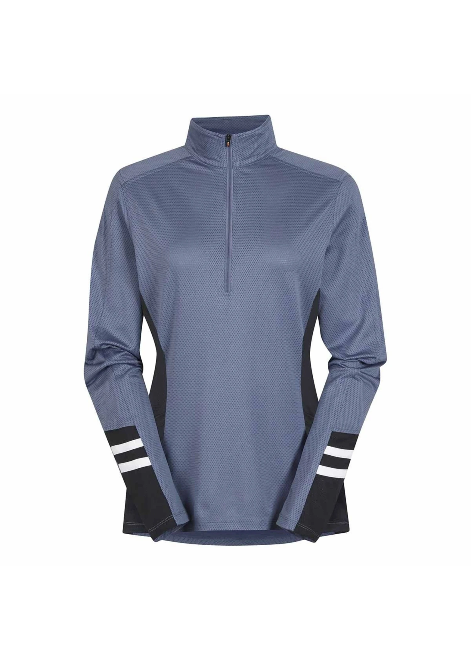 Cooling coverage in a top so light riders will forget about the sleeves. High-tech Ice Fil® cools and wicks with UPF+30 sun protection. Ten-inch zip provides further ventilation. The sporty, feminine fit and equestrian hem flatter for confidence that stretches with every move, freeing riders to reach their goals even on the hottest afternoons. Handy side pockets are perfect for lip stuff and horse treats.