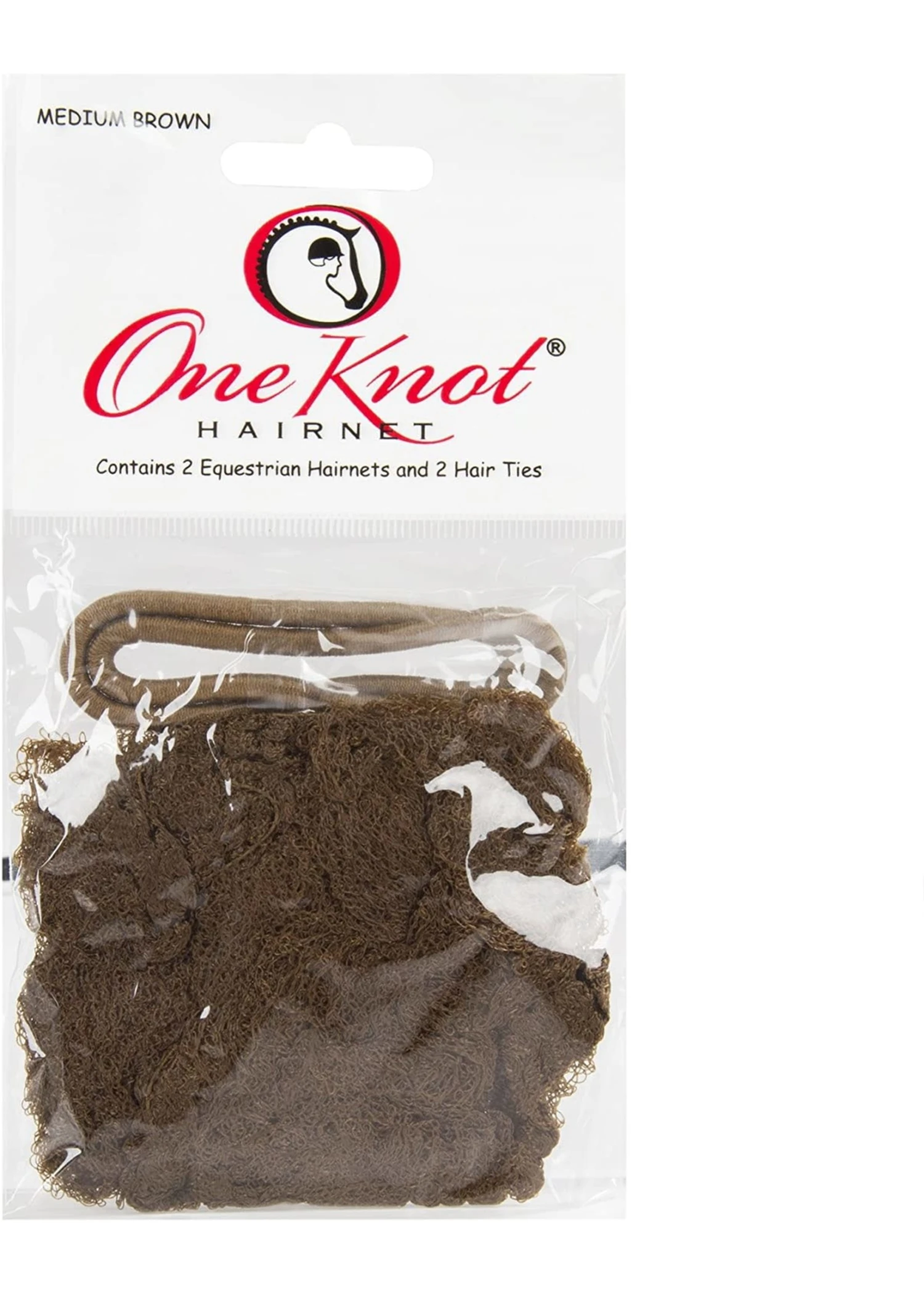 Designed specifically for riders by a rider, the One Knot™ Hairnet is smooth across the forehead to eliminate uncomfortable knot pressure when helmet is being worn. It’s made of sturdy elastic material and designed with a single knot that’s tied at the nape in a matching hair band. Each package of One Knot Hairnets includes two hairnets and a matching hair tie.