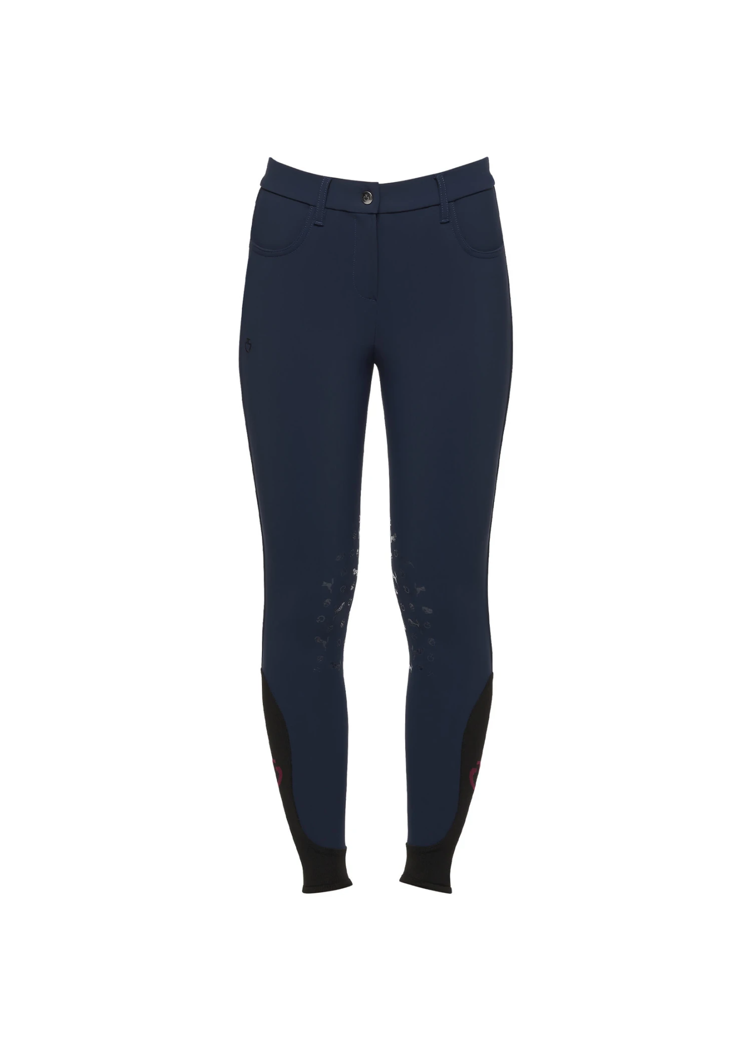 The girls’ Cavaleria Toscana breeches feature transparent fun Horse and Helmet design for the knee grips. The material used is a 4-way stretch jersey, which is particularly elastic and breathable. In addition, the material is antibacterial, quick-drying and feels pleasant on the skin. The transparent knee patches guarantee a secure hold in the saddle. The leg cuffs have extra elastic inserts so that the breeches fit snugly around the ankles and avoid annoying creases in the riding boot. All around, these breeches are ideal for daily training or the next few days at the show.