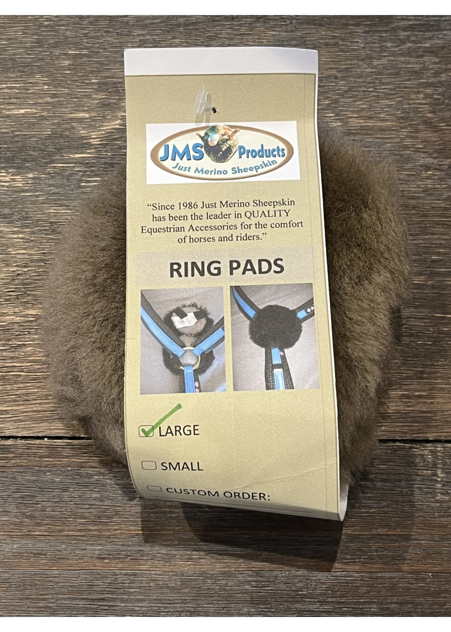Just Merino Sheepskin Ring Pad Covers. Designed by JMS Products USA owner, Judith, to be TWO-SIDED sheepskin making them reversible so they last longer – giving you DOUBLE the use!