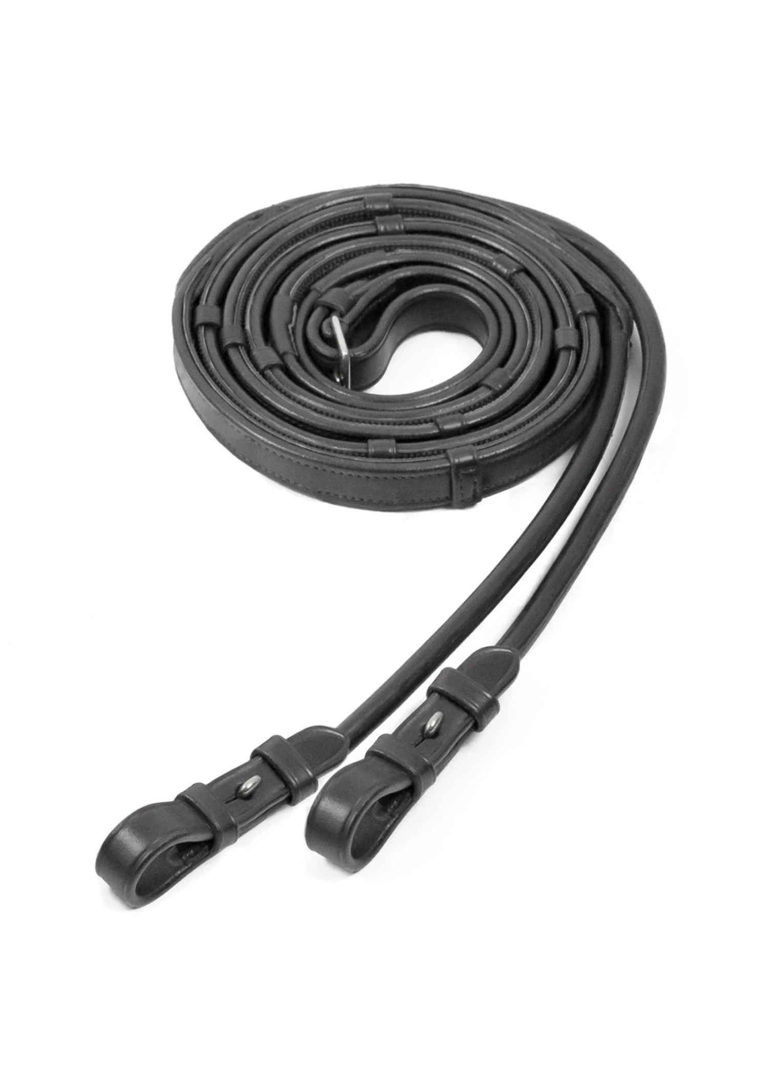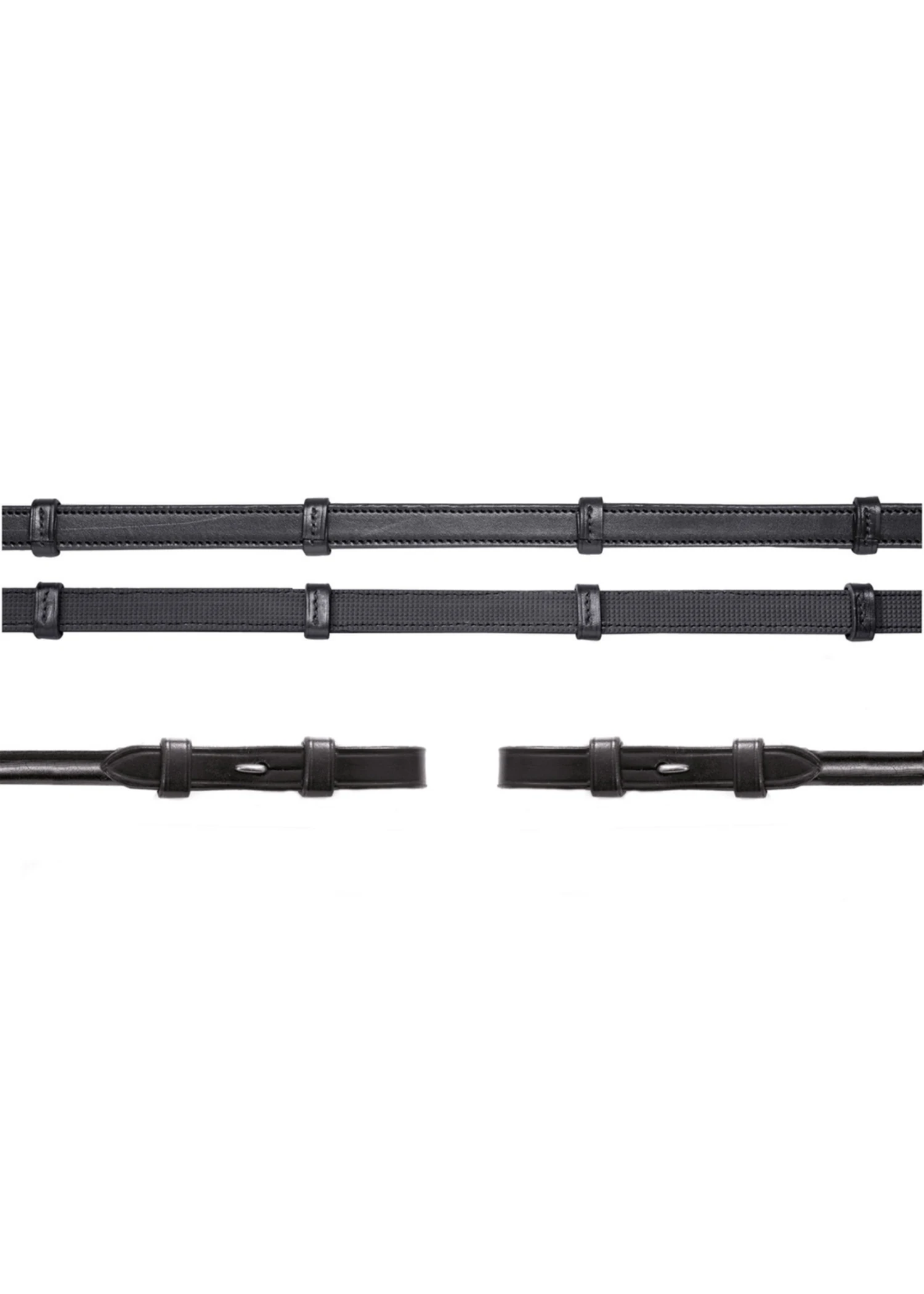 The Schockemohle Sports Trensenzugel Reins with hook & stud are made of high-quality leather and have incorporated leather stoppers. Exceptionally slip-proof due to the rubberised soles.