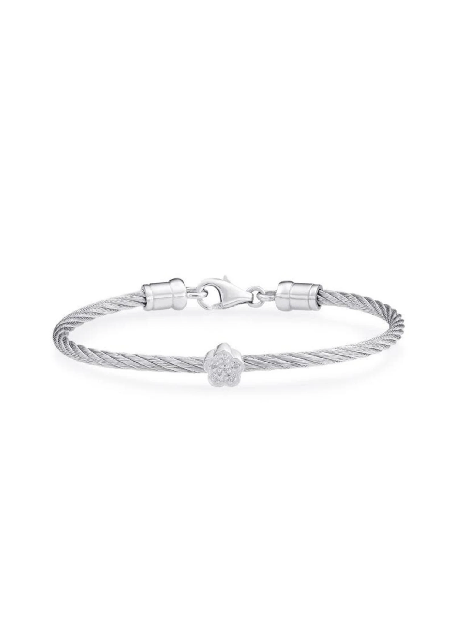 Made of a combination of sterling silver and stainless steel, it wears well and will stand the test of time. Sure to be her first special keepsake bracelet.