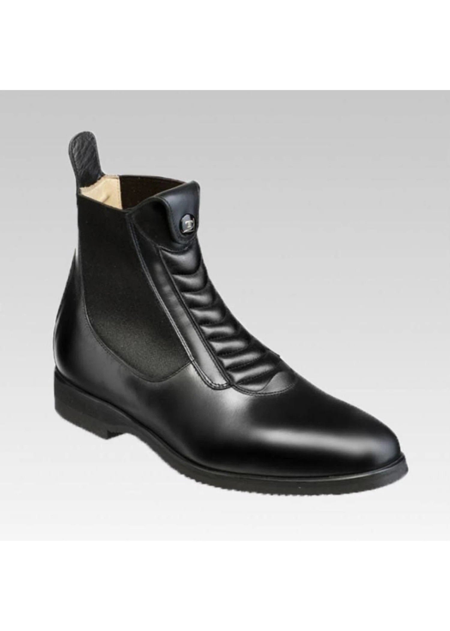 Carefully engineered, these Tucci Time Boots Paddock Boots have twin elastic twin band around the ankles and back flaps to allow easy entry for quick on/off, which also ensures maximum comfort and encourages a correct heels-down position. The featherweight sole with aggressive profile favours a secure, yet comfortable, grip to the stirrup. A finishing detail is the innovative half chap snap-concept feature, which guarantees security when the boots are paired with Tucci Chaps.