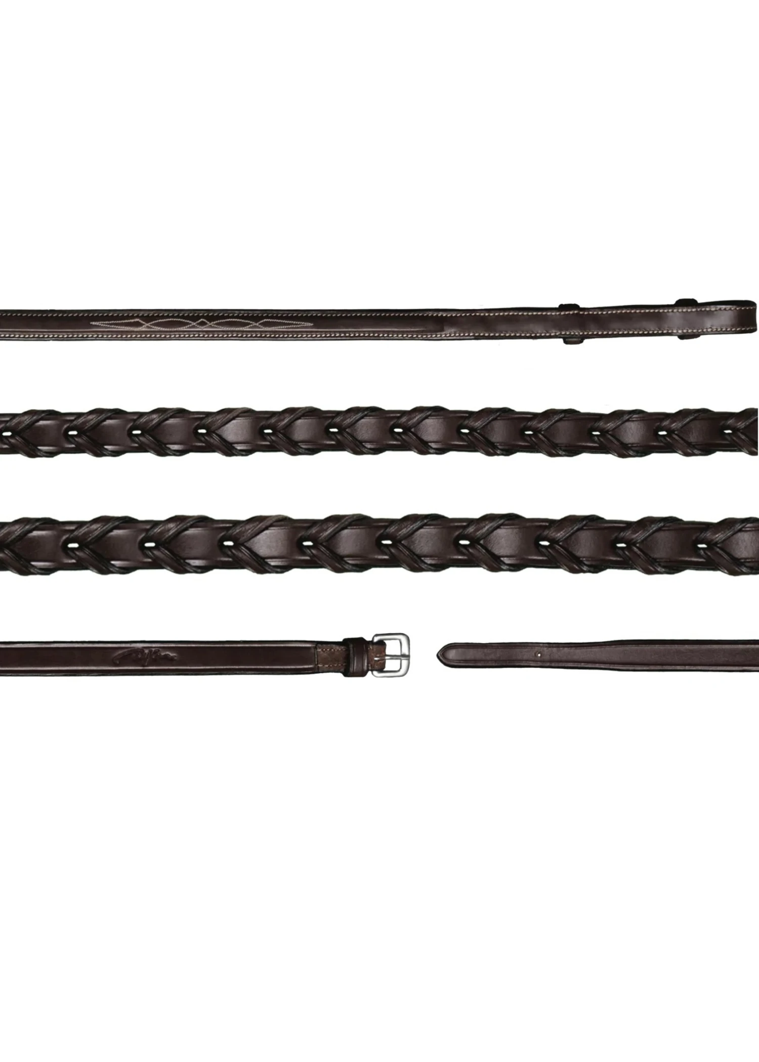 These 1/2″ laced reins are from Dy’on’s US Hunter collection which feature cream colored stitching and steel buckles. The laced detail provide exceptional grip and the traditional hunter or equitation look.