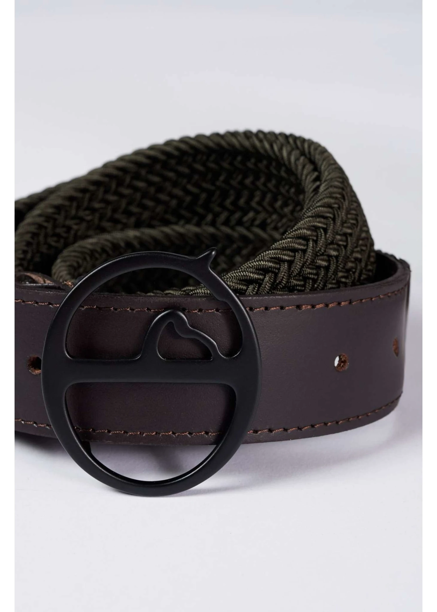 Belt made with cowhide leather, elastic band and Vestrum shaped metal buckle.Very comfortable during Sports activities.
