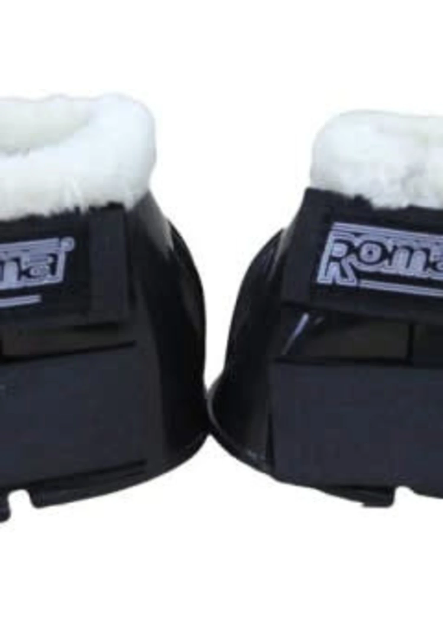 High quality rubber bell boots trimmed in white fleece for comfort. Touch tape closure for easy on off.