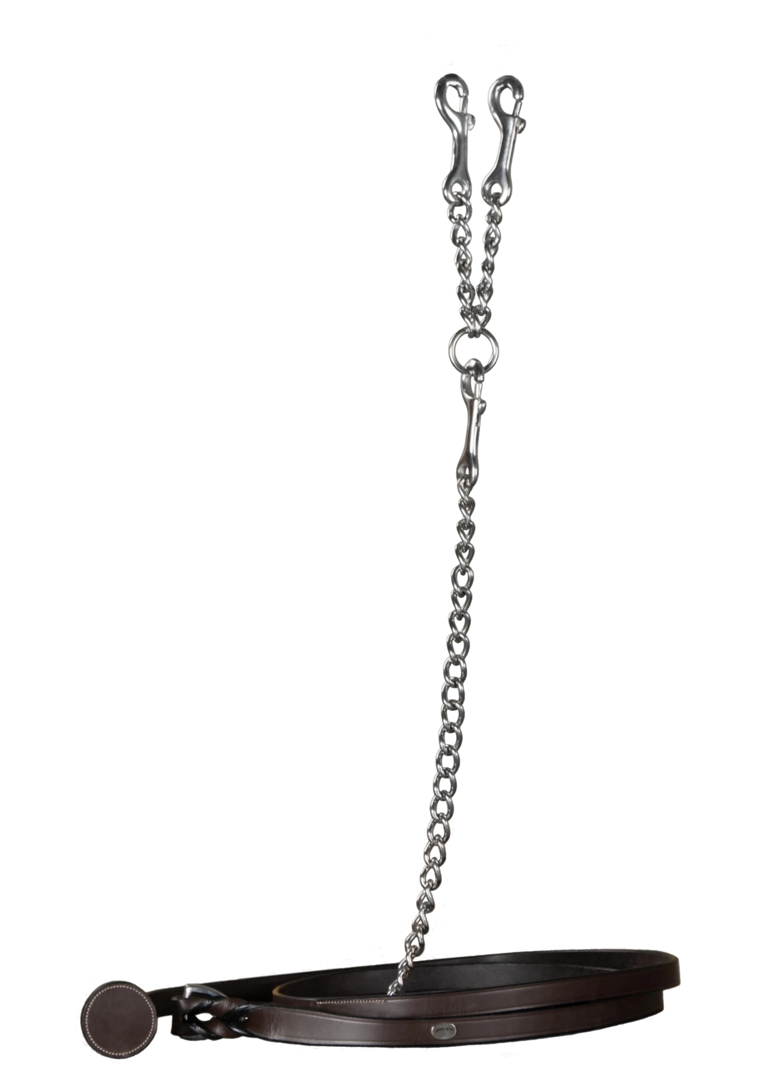 This leather lead shank is part of Dy’on’s Working Collection which features Grade 1 Catalan leather, tanned in Spain. The leather section is 6.8 ft long and the chain comes in nickel or brass.